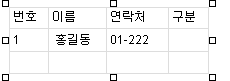 : 테이블을 등록합니다. 최초 등록시 테이블 선을 [셀간격] 및 [배경색]을 이용하여 만드는 옵션으로 지정되어 있습니다. 각 셀에서 테두리를 지정하여 테이블 테두리를 구성하려할때는 셀간격을 0으로 하거나 배경색을 #ffffff 로 하여 기존테두리를 없앨 수 있습니다.