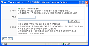 웹브라우저에서 기본 제공하는 폰트(굴림,돋움,Arial 등)외의 폰트로 페이지를 구성하고자 할때 먼저 해당 폰트파일을 이곳에 등록해 놓으면 됩니다.