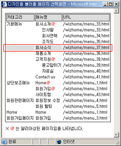 그래서!... 좌측처럼 [페이지불러오기] 메뉴를 선택하여 복사해올 페이지(여기서는 [회사소식])를 선택합니다.