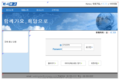 페이지 마다 로그인 모듈을 사용하지 않고 아래 그림처럼 로그인 및 회원가입 링크만을 보여주는 방식으로 홈페이지를 구성하는 방법입니다.