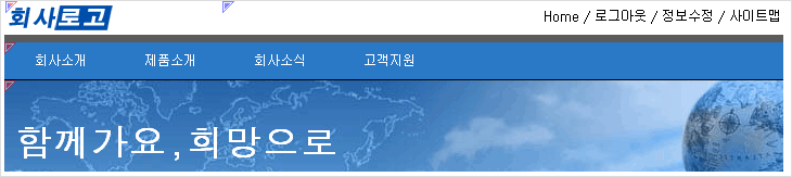 [회원가입] 메뉴는 로그인한 상태이므로 보이지 않게 되고, [로그인]메뉴가 [로그아웃],[정보수정]메뉴로 변경됩니다.