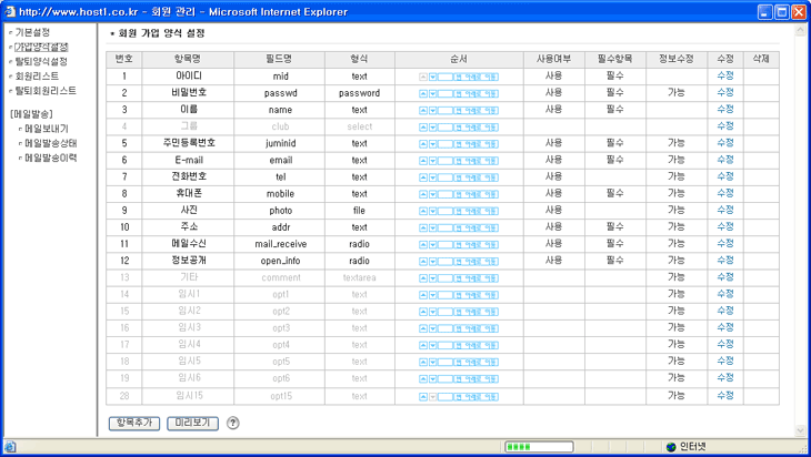 접근경로 : 작업메뉴 -> 회원관련설정 -> 가입양식 및 탈퇴양식 설정