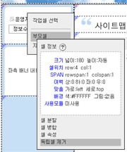 독립 셀을 다시 일반셀로 변경하고자할때 우측그림처럼 셀태그(