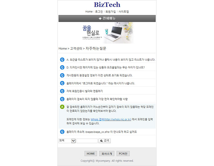 새로운 무료스킨 추가되었습니다. 관리자2015.11.11 21:34:17 조회6369 일반적인 비즈니스용 홈페이지에 적합한 스킨이 다수 추가되었습니다. 이미지를 최대한 배제하고 텍스트 수정만으로 홈페이지를 만들 수 있도록 구성되었습니다. 또한 모바일페이지 전용 스킨도 추가되었습니다. 기존 스킨에서 모바일페이지용 스킨만 별도로 추가할 수 있습니다. 물론 반대로 모바일 페이지는 그대로 두고 PC용 레이아웃만 다른것으로 불러오는 기능도 추가되었습니다. 기타 추가된 무료 스킨은 무료 스킨 메뉴에서 확인 가능합니다.